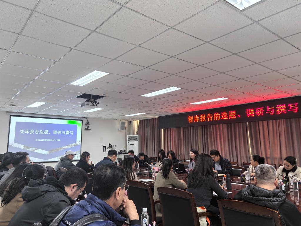 2025年11月5日,我校举办智库报告的选题、调研与撰写专题讲座。人文社科处处长宋玲主持,山东省社科院智库研究中心研究员刘晴作专题讲座,各教学院部教师代表参会。