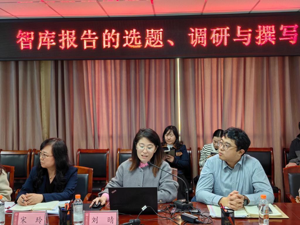 刘晴结合工作经历,从智库报告四大常见误区入手,指出在报告写作过程中要体现地域特色、快速切入主题、明确研究报告核心建议、突出前瞻性。撰写人应紧紧围绕“选题精准、调研深入、数据多元”三大核心要素,下真功夫调研分析,提高研究报告质量。刘晴从精心打磨标题、简明引导语、夯实主题内容、把握文本风格、精炼报告篇幅、着重建议措施等五个方面详细解读了咨政报告的写作脉络。同时介绍了政策建议类、调研报告类等四类报告的写作方式,强调有组织科研的重要性,建议学校加大对咨政建言工作的组织和支持,助力教师提升咨政成果质量与转化效率。